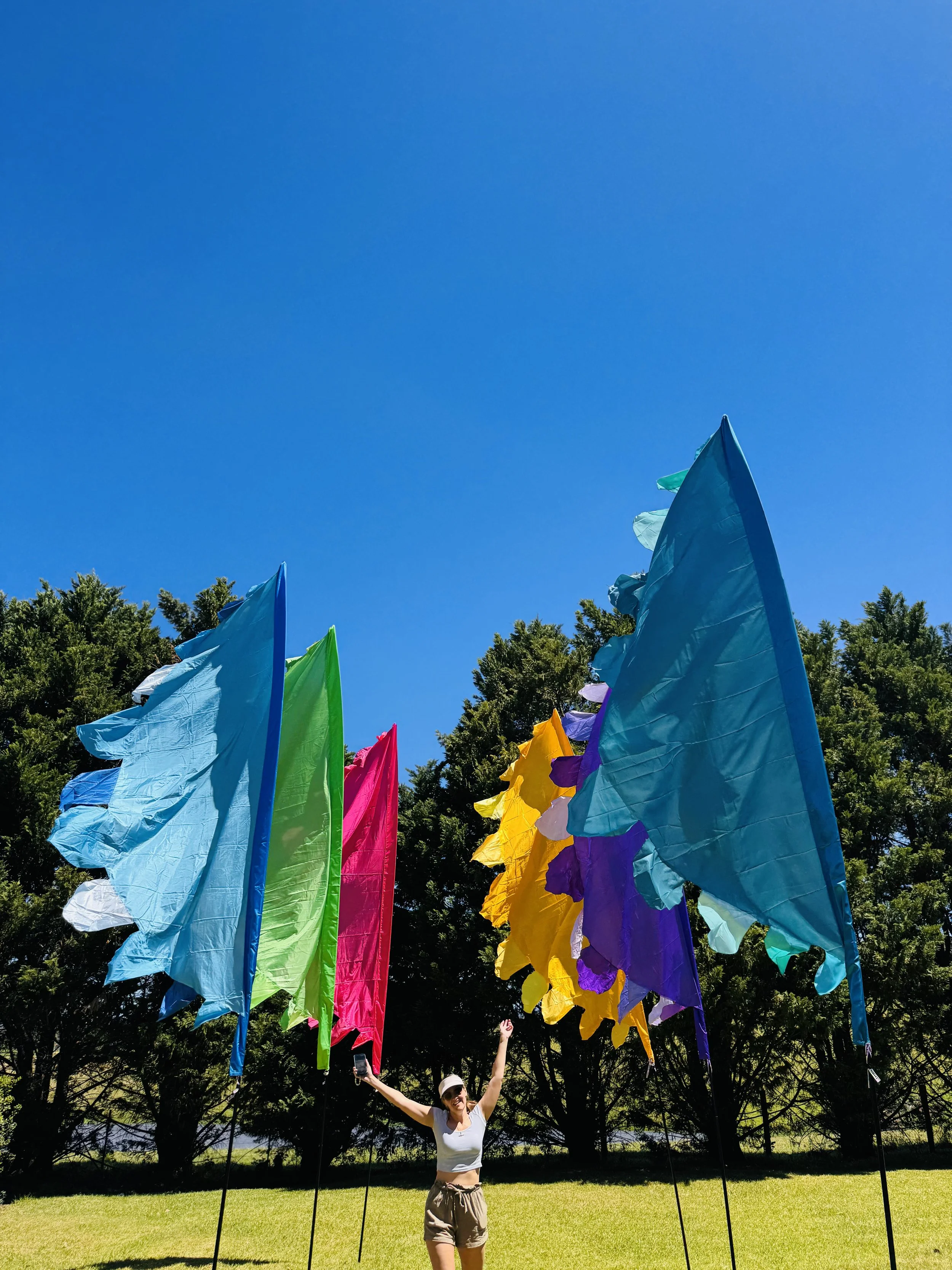 Our Sunburst flags are each 3.2m in length by 1.5m at their widest point.